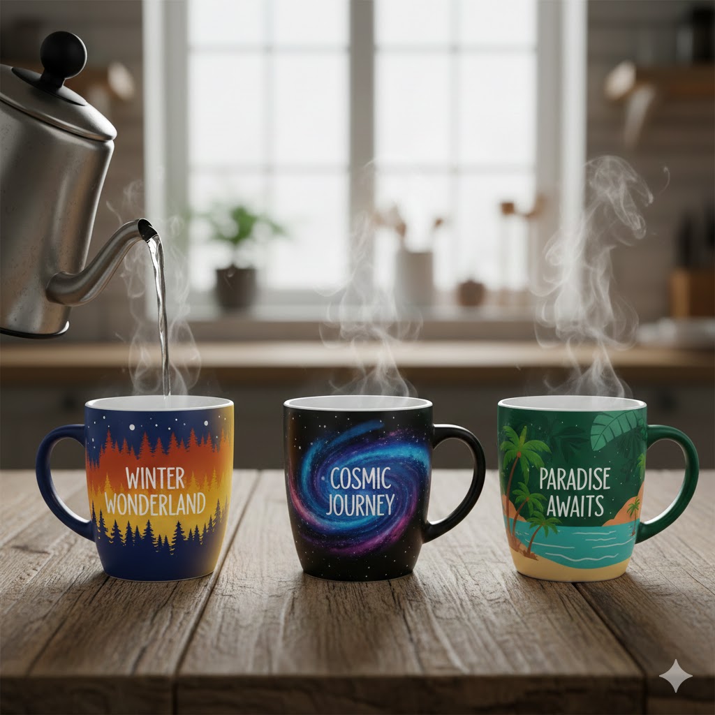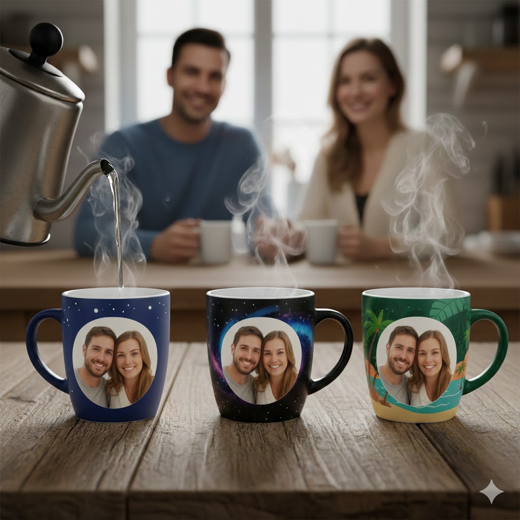 Perfect for personalised gifting, corporate branding, birthdays, anniversaries, and promotional giveaways, these mugs combine everyday usability with a surprise element. Made from durable ceramic and printed with high-quality heat-sensitive coating, magic mugs offer both visual appeal and long-lasting performance.