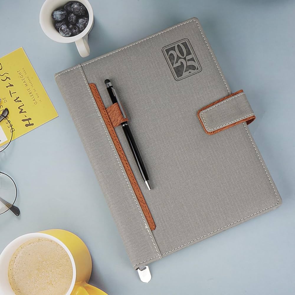 Stay organized and stylish with our Diary with Pen Holder, thoughtfully designed for everyday writing and planning. Featuring a built-in pen holder, this diary ensures your pen is always within reach, making it perfect for meetings, travel, and daily journaling.